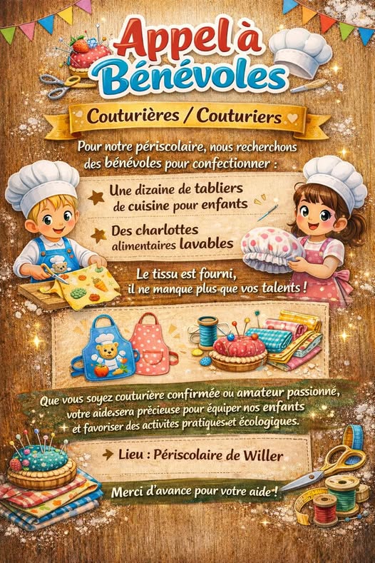 Les responsables du périscolaire de Willer recherchent des bénévoles couturières.